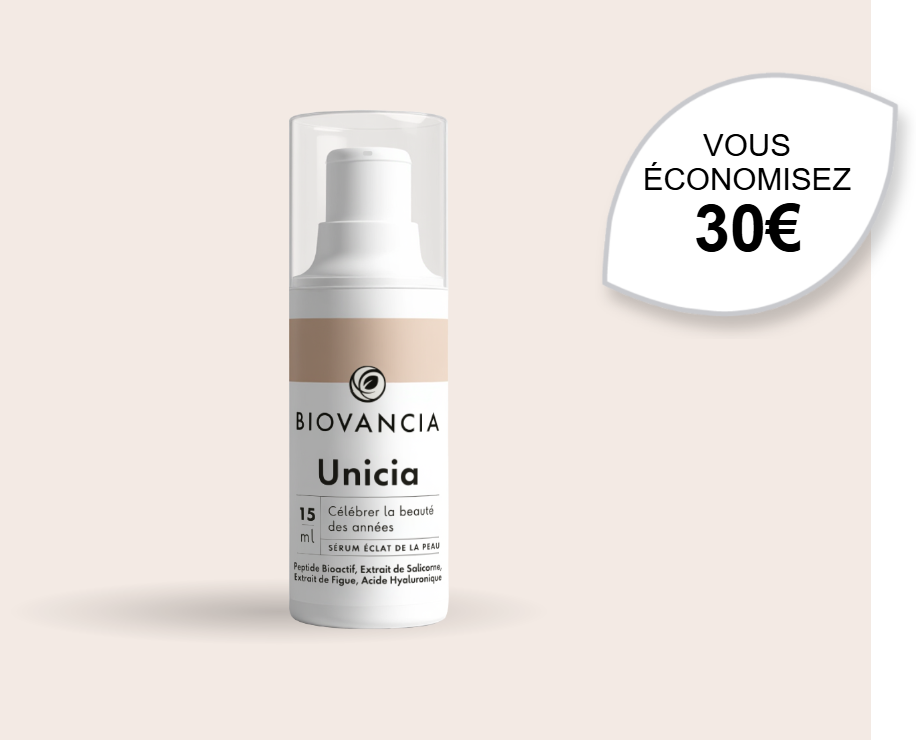 Vous souffrez de taches brunes tenaces sur le visage, les mains ou le décolleté ? Unicia est le complément alimentaire anti-taches de référence du laboratoire français Biovancia, formulé avec 6 actifs synergiques pour agir à la racine du problème : la glycation et la surproduction de mélanine.